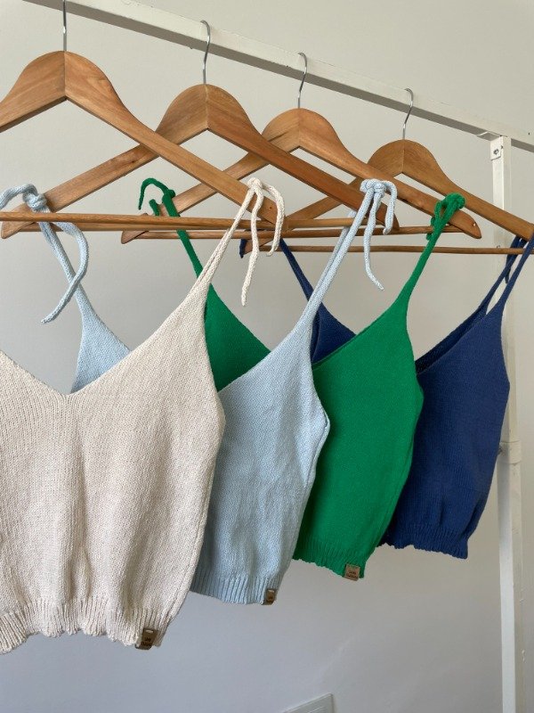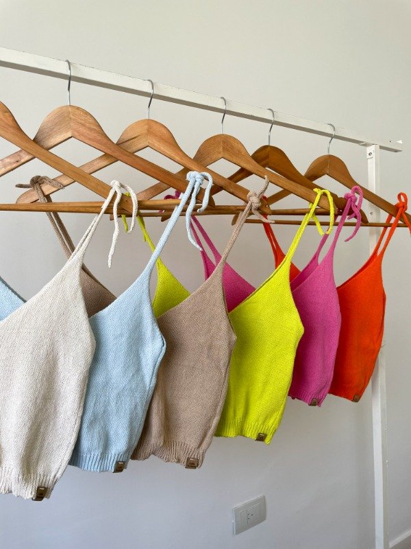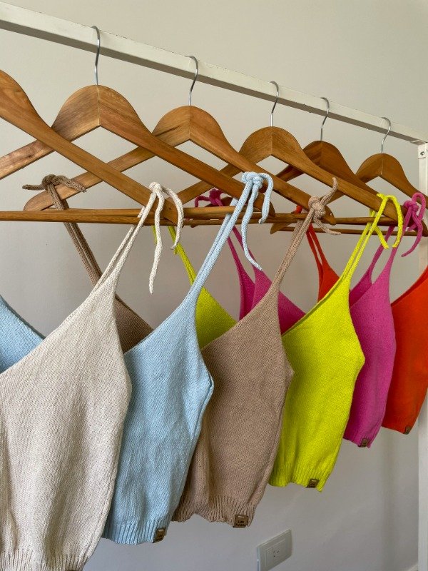 El TOP BASIC es esa prenda infaltable para el verano. Tejido en hilo de algodón, escote en V y tiritas regulables para que se adapte mejor al largo que quieras.